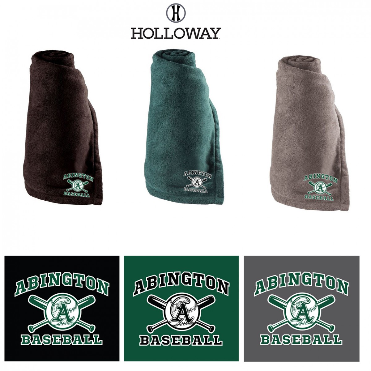 Imprint: 2 color corner blanket embroidered Baseball “A” logo with bats, white and either forest green or black thread (depending on goods color)