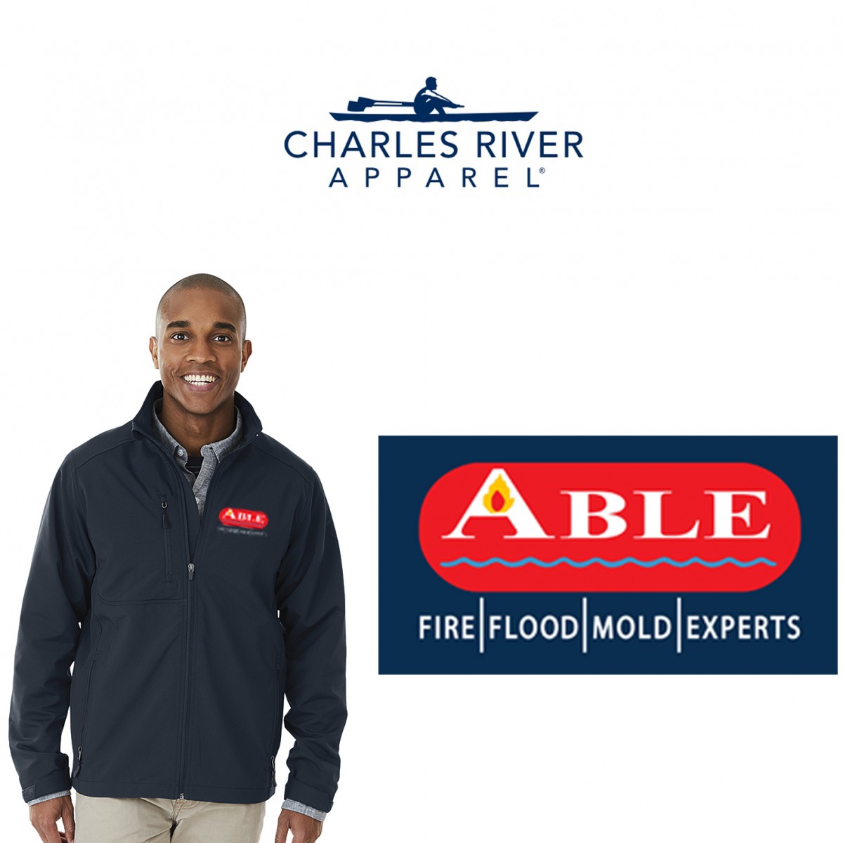 Imprint: 1 location embroidered left chest size ABLE logo