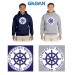 Imprint: 1 location full front silkscreen 2 color ship wheel logo