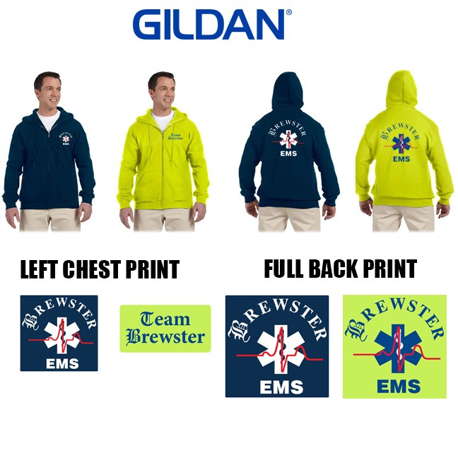 Item: Brewster Ambulance Gildan Adult Unisex/Mens DryBlend® 9.0 oz., 50/50 Full-Zip Hood, 2 Imprint Version