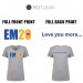 1st location: 3 color silkscreened imprint, full front, EM•20 logo, pms colors provided