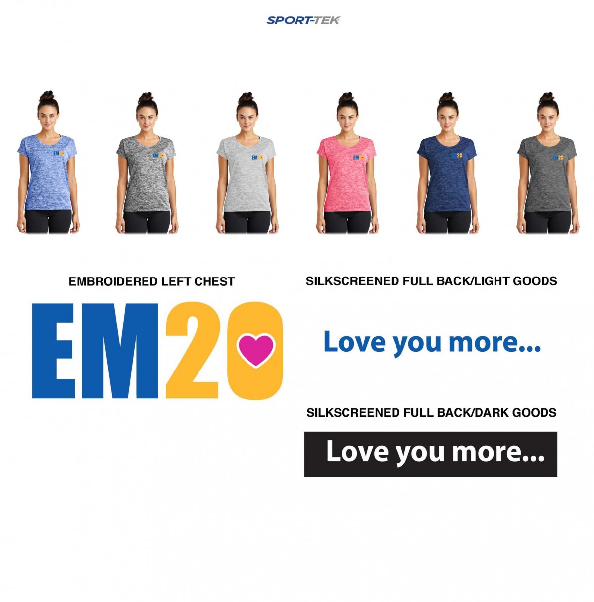 1st location: multicolor left chest embroidery, EM•20 logo, pms colors provided