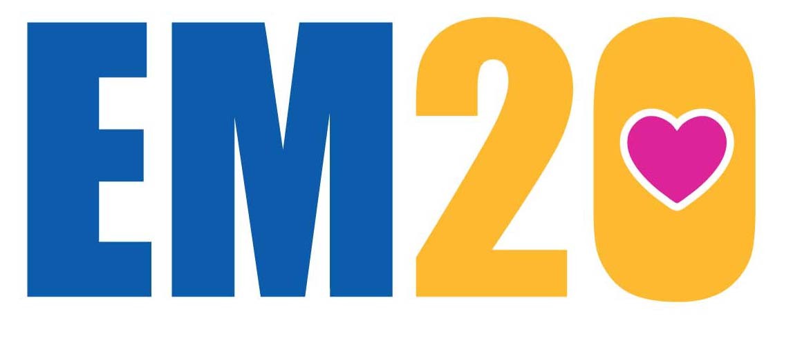 1st location: multicolor left chest embroidery, EM•20 logo, pms colors provided