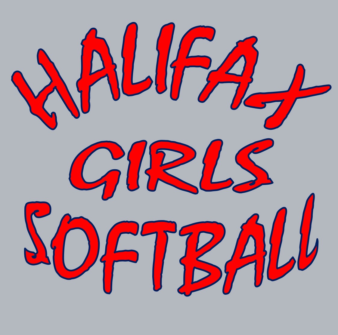 2nd location- 2 color silkscreen logo, full back, “Halifax Girls Softball” text on back, either red and white ink or red and navy blue ink