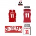 Imprint: Silkscreen logo on front (Hingham arched), and heat press name on back. Also numbered both front and back. Print is either white (on red side of garment) or red (on white side of garment. This item is reversible.