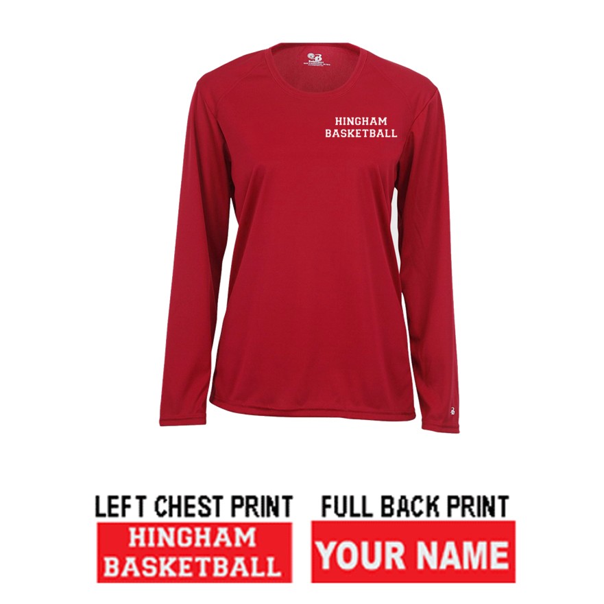 Hingham Girls Basketball Travel Team Exclusive Badger B-Core L/S “Shooter Shirt” Tee, Ladies