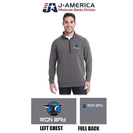 Item: Iron Way Fitness J America Adult Omega Stretch Quarter-Zip, Blue Logo Version