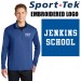 Imprint: 1 location left chest embroidery, white thread, “JENKINS SCHOOL” in stock athletic font
