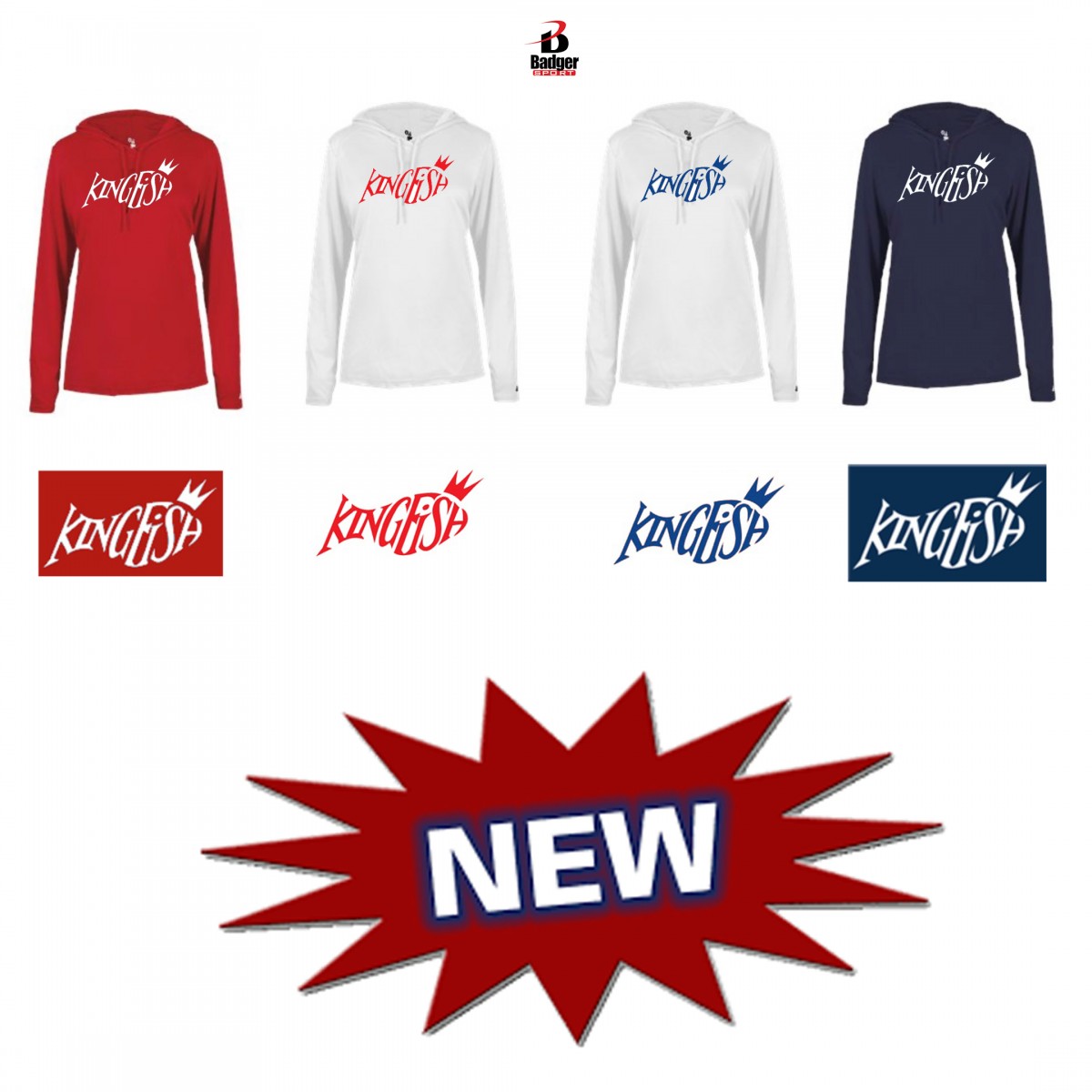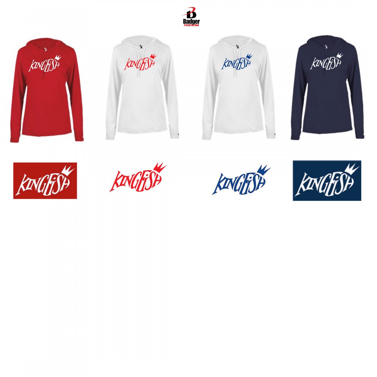 Item: Kingfish Swim Team Badger B-Core Long Sleeve hoodie Tee, Ladies