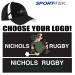 1st option: multicolor embroidery, Nichols Rugby TEXT logo reading “NICHOLS RUGBY” with “Oderint dum Metuant” below it, hat center placement