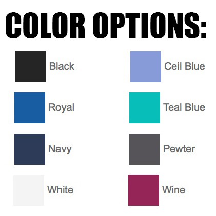 Colors: Black, Royal, Navy, White, Ceil Blue, Teal Blue, Pewter, Wine