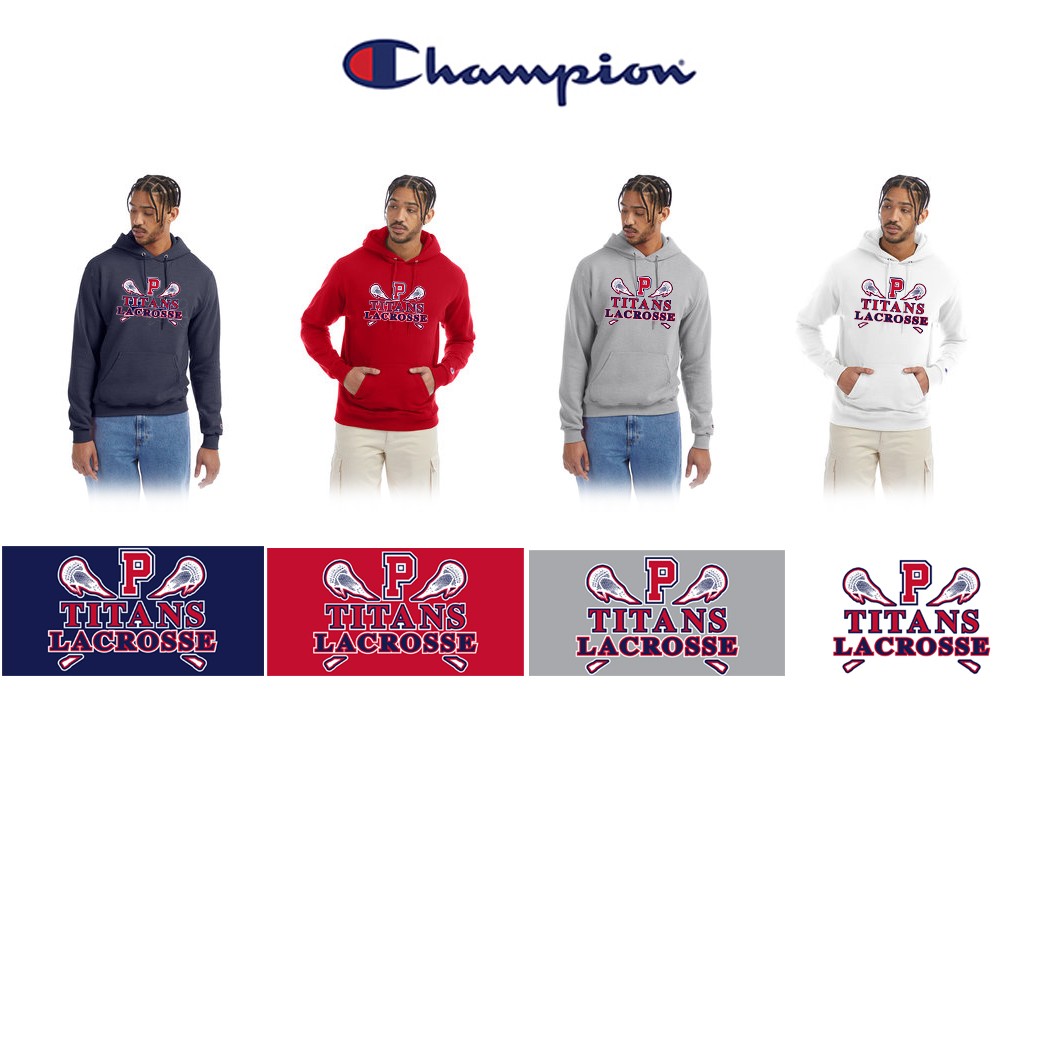 Item: Pembroke Titans Youth Lacrosse Champion Adult Powerblend® Pullover Hooded Sweatshirt, Silkscreened