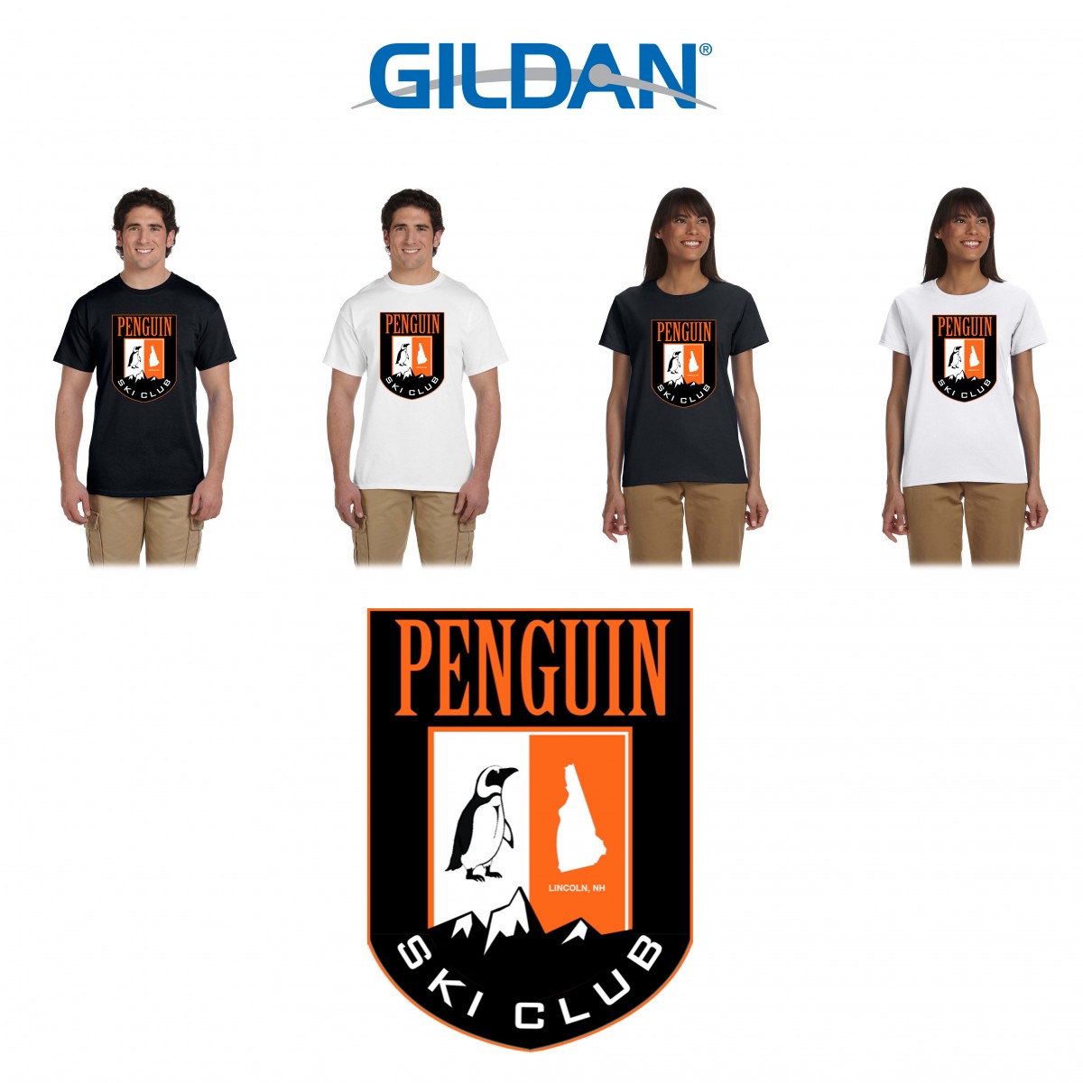 Item: Penguin Ski Club Gildan Adult Ultra Cotton® 6 oz. T-Shirt, Men’s and Women’s