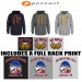 1st Location: Left Chest Imprint, Ski Squad text with beer mugs, 4 color silkscreen, black, red, gold and white