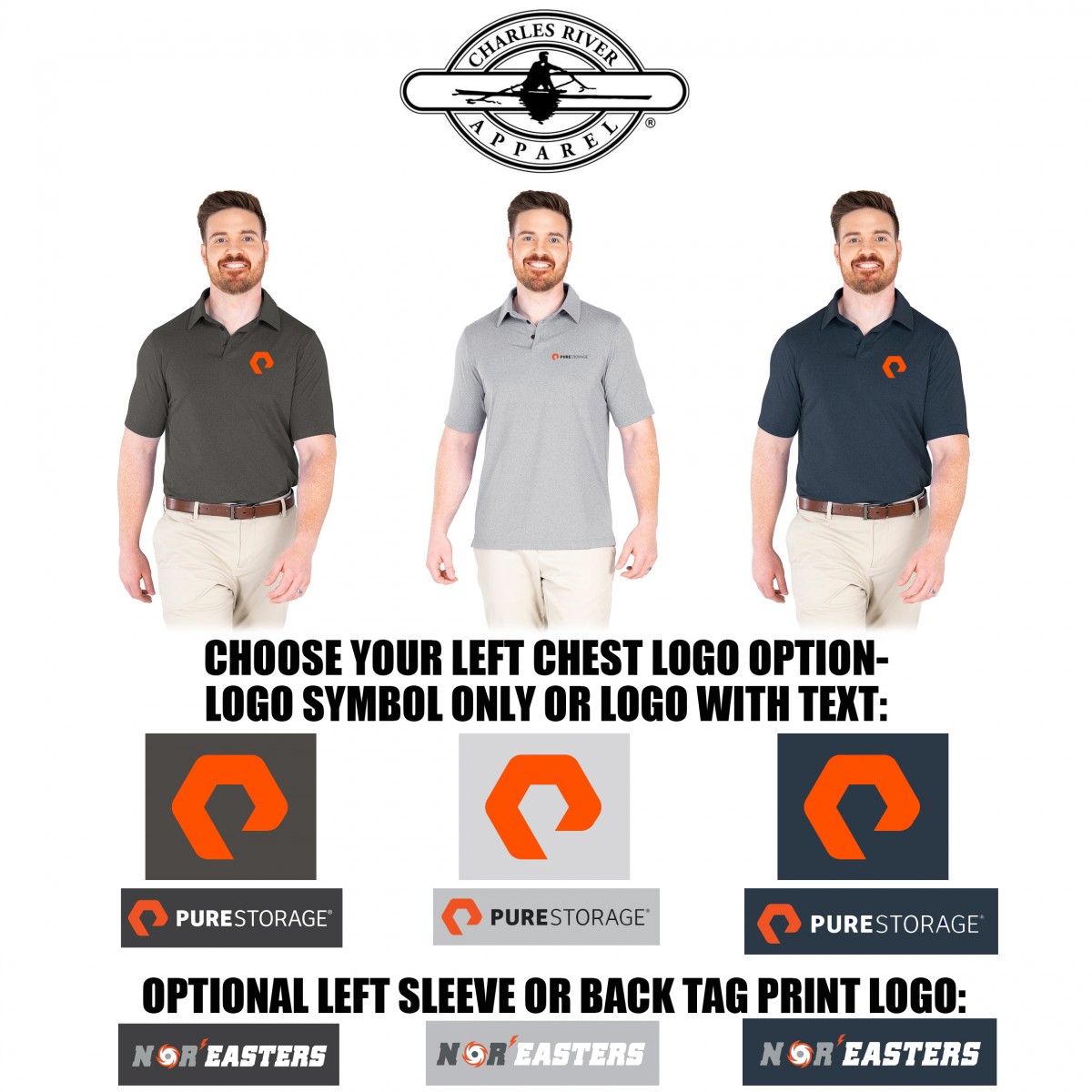 2nd option: Embroidered left chest logo, Pure Storage Symbol with Text