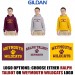 1 color silkscreen full front imprint, “RALPH TALBOT” text with paw print and smaller Weymouth below it, or “WEYMOUTH WILDCATS” text with paw print, Maroon or Athletic Gold print