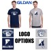 1st option: 1-2 color full front silkscreen logo, “ROCKLAND” with large Bulldog head logo