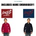 NOTE: This item includes your name embroidered on the left sleeve in red thread Century Block font style on navy, and navy thread Century Block font style on red! Please spell your name in the "FREE NAME PERSONALIZATION" field as you'd like it to appear on your garment!
