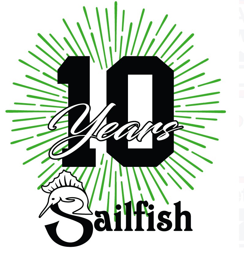 1st :Location- Full front 2 Color Print, black and lime green 361c, “Sailfish 10 Years” logo