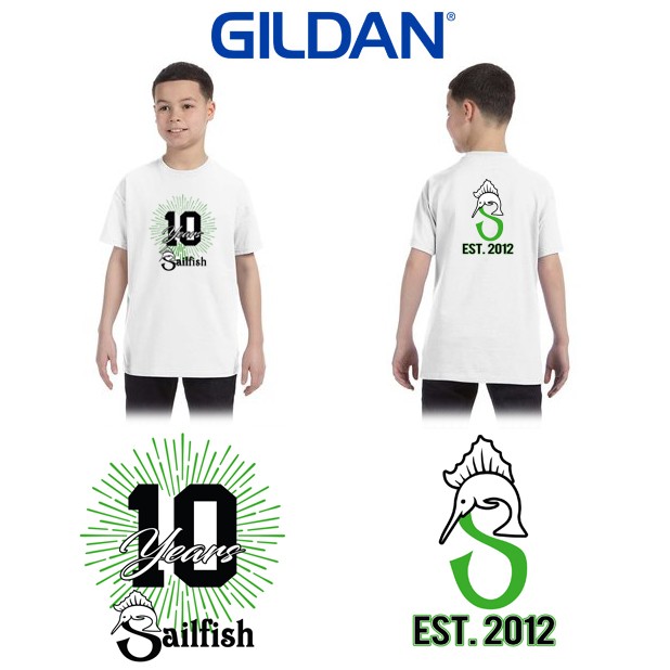 Item: Sailfish Swim Team Special Limited Edition Tee- Sailfish 10 Years/Established 2012 Gildan Youth Heavy Cotton™ T-Shirt