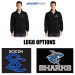 Option 2: 1 location left chest, embroidered, SciCoh Shark Logo with “SHARKS” text below it