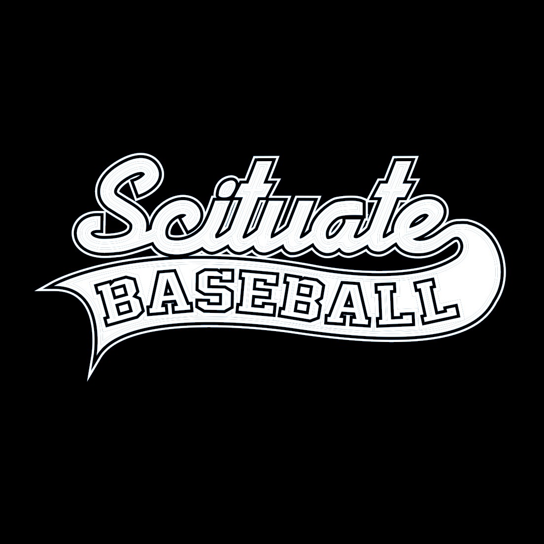 Imprint: 1 location SILKSCREENED 1 color center print silkscreen large logo “Scituate” with “Baseball” in tail, BLACK side