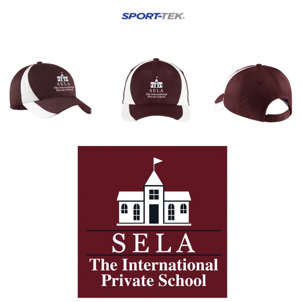 Item: SELA - The International Private School Sport-Tek® Adult Dry Zone® Nylon Colorblock Cap, Adult Fit