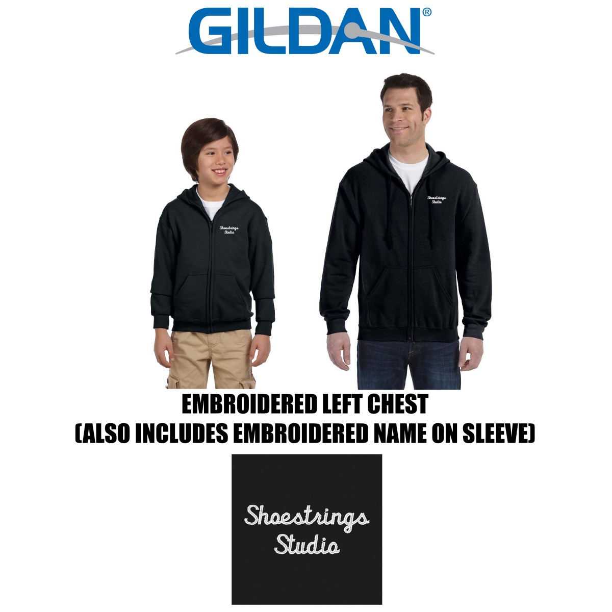 Item: Shoestrings Studio Gildan Brand Full Zip Hooded Sweatshirt HeavyBlend 8oz 50/50 for Youth & Adult