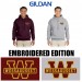 Imprint: embroidered, left chest location, gold/maroon, Wessagusset “W” logo with text across center