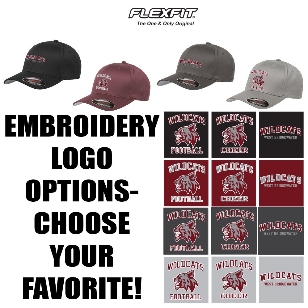 Imprint: Options: 1 location embroidery center hat, “Wildcats Football”, “Wildcats Cheer” logo, or “Wildcats West Bridgewater” text logo